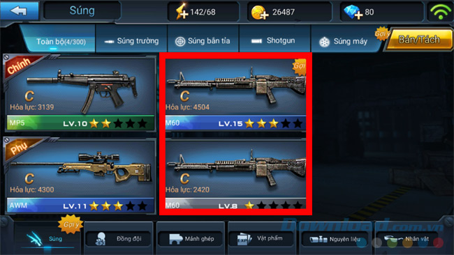 Bước 1: Cũng từ trong giao diện chi tiết súng, các bạn click vào Tách.