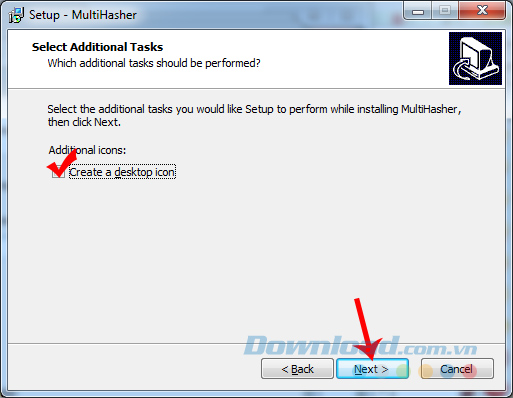 Bước 7: Tick chọn mục Create a desktop icon để tạo biểu tượng của phần mềm này trên máy tính, sau đó chọn Next.
