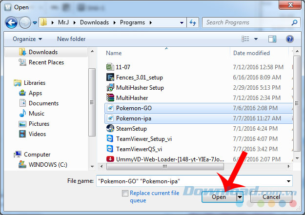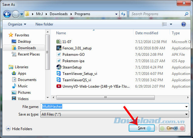 Download.vn chọn hình thức quét files - Select files. Một cửa sổ Windows sẽ xuất hiện, các bạn tìm tới vị trí lưu các file cần quét. Như trong bài này, chúng ta đang cần quét kiểm tra mã hash của các file APK dùng để cài game Pokemon GO.