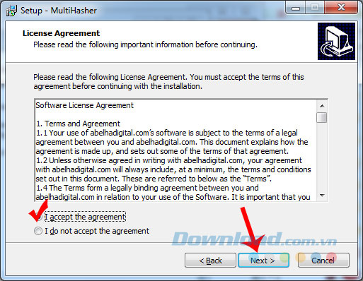 Bước 4: Tick vào mục I accept the agreement rồi Next.