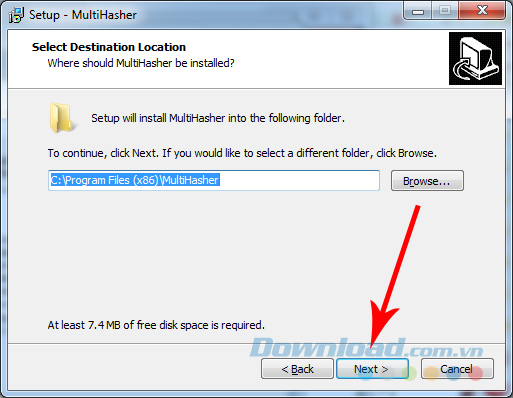 Chọn vị trí cài đặt phần mềm MultiHasher trên máy tính