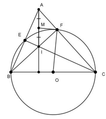 Xét tam giác AFI vuông tại F, có M là trung điểm của AI
