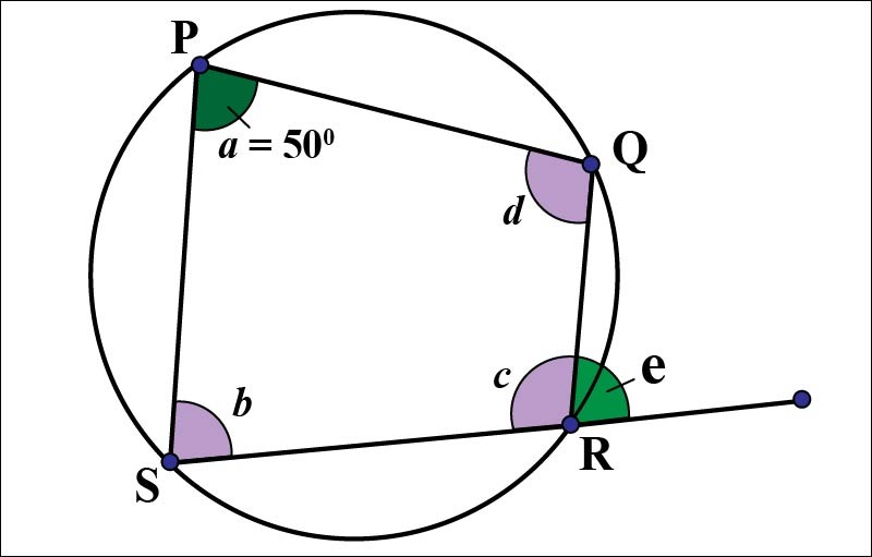 Trong một tứ giác nội tiếp, tổng số đo hai góc đối diện bằng 180°.