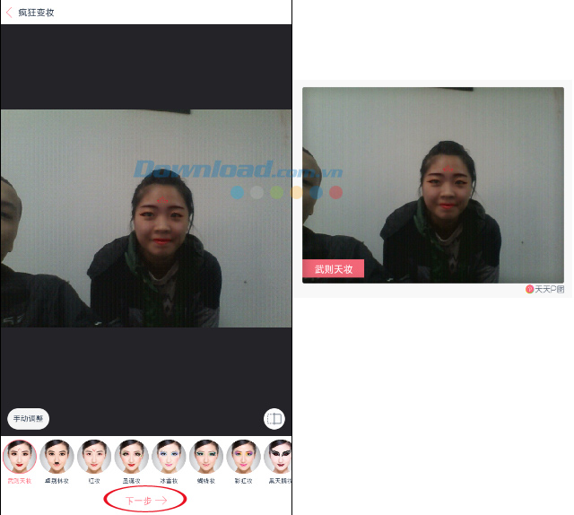 Bước 3: Ngay sau khi đưa ảnh vào phần mềm chụp ảnh Võ Tắc Thiên tự động tùy chỉnh các hiệu ứng cho bạn. Nếu muốn chọn cách tạo hình khác có thể chọn ở phía dưới ảnh, bạn nên chọn 3 cách tạo hình đầu là phù hợp với Võ Tắc Thiên nhất.