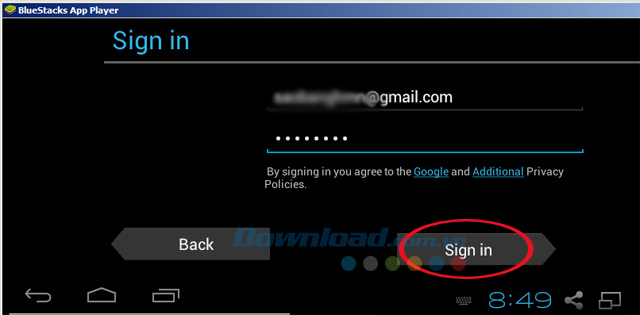 Bước 4: Cửa sổ Sign in xuất hiện, hãy nhập tên tài khoản Google của bạn vào ô Email và mật khẩu vào ô Password. Sau đó, nhấp chuột vào nút Sign in để đến cửa sổ kế tiếp.