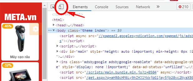 Để chụp toàn bộ nội dung trang web, đầu tiên các bạn hãy mở trang web đó lên sau đó nhấn nút F12 trên bàn phím để mở tab mã code của trang web. Ở tab này, các bạn hãy nhấn vào nút Toggle device để chỉnh kích thước website.