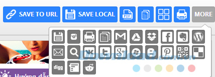 Bước 8: Cuối cùng bạn hãy lưu lại ảnh chụp màn hình. Tiện ích này hỗ trợ lưu ảnh thành URL, lưu về máy, in trực tiếp thông qua máy in. Còn nếu muốn chia sẻ trực tuyến thì nhấn vào More bạn sẽ có thêm lựa chọn chia sẻ ảnh qua: Google Drive, Facebook, Evernote, Twitter, Google+, Pinterest...