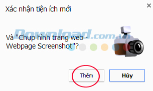 Bước 4: Ngay sau đó sẽ có cửa sổ xác nhận bạn có muốn thêm Webpage Screenshot vào trình duyệt Cốc Cốc hay không? Nhấn Thêm để đồng ý thêm tiện ích mở rộng này vào trình duyệt Cốc Cốc.