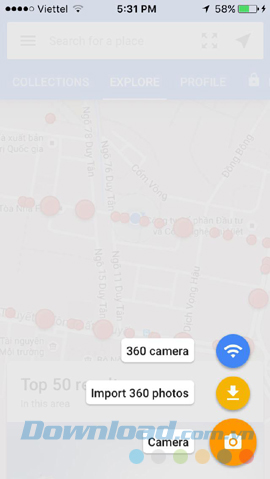 Bước 2: Bên trong ứng dụng, các bạn có thể chọn vào Camera để chụp ảnh 360, sau đó dùng những ảnh này đăng lên Facebook.