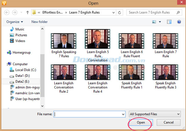 Sau đó, hộp thoại Open sẽ mở ra. Vui lòng duyệt thư mục trong máy tính để chọn video mà mình muốn chuyển đổi. Sau khi hoàn tất, nhấn Open để tiếp tục.