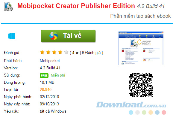 Mobipocket Creator là phần mềm không chỉ tạo được các ebook với định dạng PRC mà nó còn có thể tạo ra các file PRC (chuyển đổi định dạng) từ file PDF, Word và một vài định dạng khác.