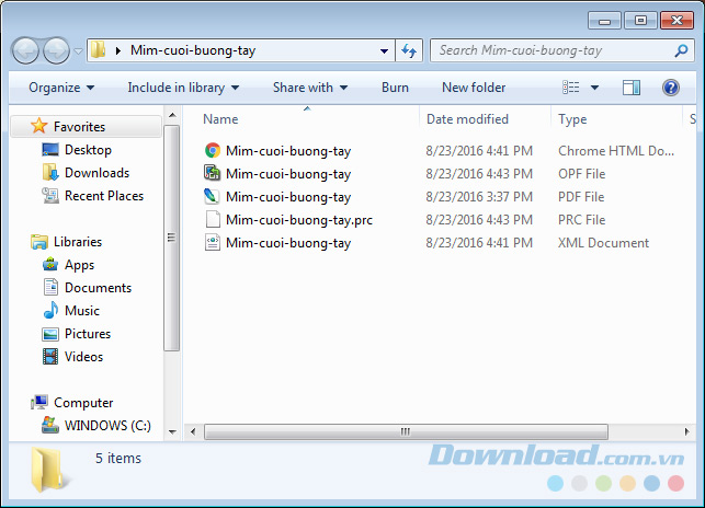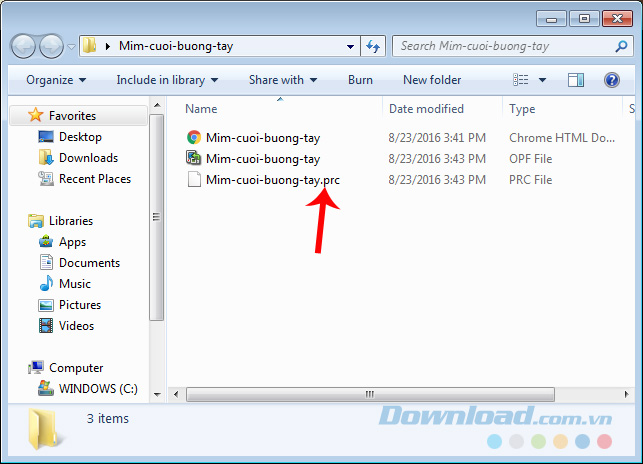 Truy cập vào vị trí bạn đã lựa chọn để lưu sẽ thấy file PDF được chuyển thành PRC.