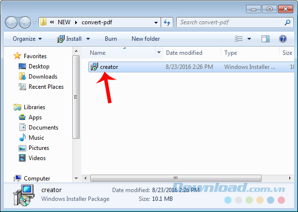 Bước 1: Tìm tới vị trí lưu file vừa tải về, nhấp đúp chuột trái vào đó để bắt đầu.
