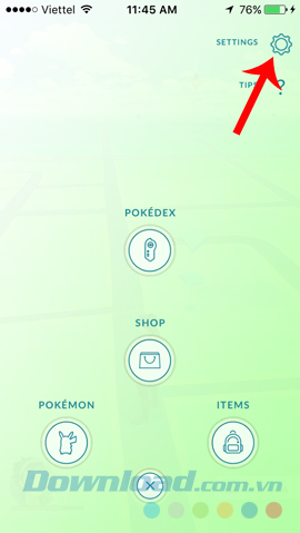 Bước 1: Từ giao diện chính của trò chơi Pokemon Go, chúng ta chọn vào biểu tượng Pokeball, chọn tiếp vào biểu tượng bánh răng cưa (góc trên, bên phải màn hình) để vào chi tiết cài đặt.