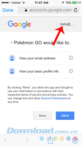 Bước 4: Tải hoàn tất, hãy đăng nhập lại tài khoản bạn đang chơi vào và làm tương tự như khi đăng nhập game lần đầu (xem bài hướng dẫn cách chơi Pokemon Go cho người mới).