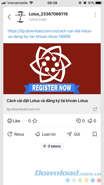 Bước 2: Các bạn copy (cắt) một đường dẫn bất kỳ, đường dẫn của bài viết, video clip hay bất cứ link nào bạn cần chia sẻ trên Lotus, sau đó paste (dán) vào phần nội dung bài viết (Tạo bài viết). Cuối là chọn Đăng bài để hoàn tất.