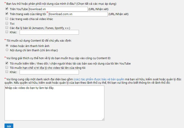 Sau khi nhập xong các thông tin phía trên hãy nhấn nút Gửi để hoàn tất. Lúc này chúng ta cần chờ đợi để Youtube xét duyệt.