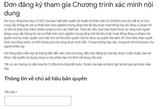 Chúng ta tiếp tục nhập các thông tin phía dưới, những thông tin bạn nhập tại đây sẽ là yếu tố thành bại cho việc bạn có nhận được xác nhận bản quyền kênh tại mạng xã hội Youtube hay không. Hãy cố gắng nhập chính xác và tỉ mỉ nhất có thể ở từng mục.