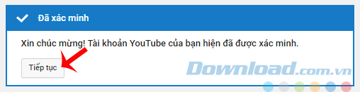 Click chuột trái vào Tiếp tục để hoàn tất quá trình xác minh tài khoản.
