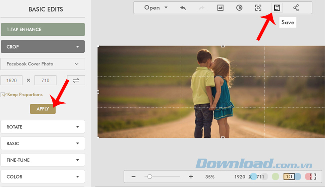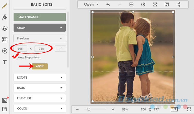 Sau khi đã chọn được kích thước mình cần, nhấp vào Apply để bắt đầu cắt, chỉnh sửa kích thước ảnh.