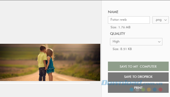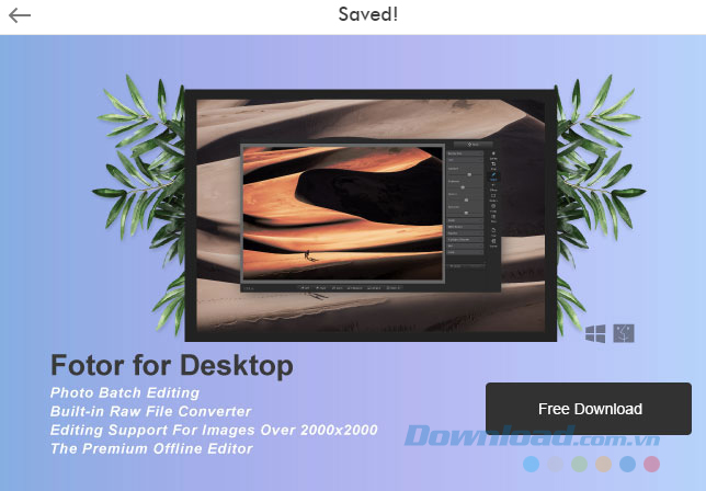 Fotor cũng sẽ thông báo cho người dùng khi ảnh của họ được lưu thành công.