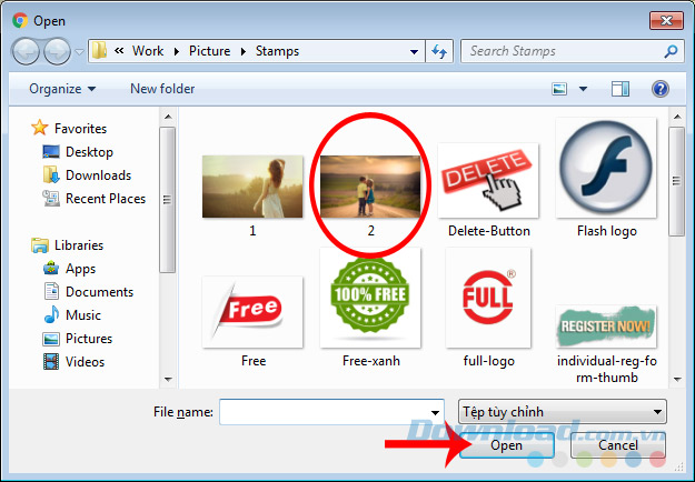 Khi cửa sổ Windows mở ra, tìm và chọn lấy vị trí ảnh cần chỉnh sửa rồi Open.