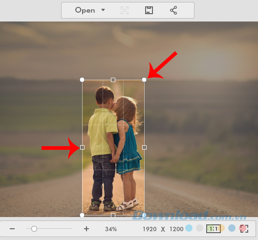 Nếu chỉ đơn giản là muốn "tỉa" lại bức ảnh cho gọn hơn (chỉnh sửa ảnh tự do), các bạn có thể bấm chuột trái vào các nút tròn trên khung 3x3, giữ và kéo chúng để lấy kích thước mình muốn.