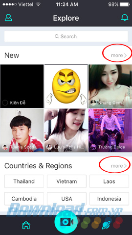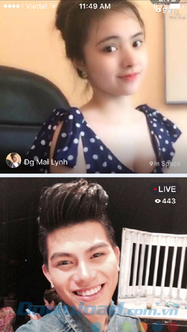 Quay trở lại giao diện chính (biểu tượng Home) chúng ta có thể tùy ý chọn một video bất kỳ để xem. Ở góc bên phải, phía trên video đó là tình trạng video (còn Live hay không và số lượng người đang theo dõi).
