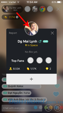 Ngoài ra còn có thể thấy được ảnh đại diện, nickname của người đó. Bigo Live có một vài thao tác rất tiện lợi để giúp người dùng thao tác thuận tiện hơn.