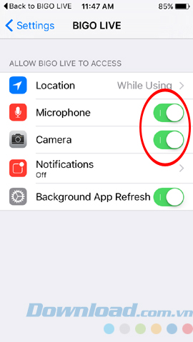 Khi stream video, chúng ta bắt buộc phải cho phép Bigo Live truy cập và sử dụng Camera, Micro trên thiết bị.