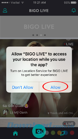 Cho phép Bigo Live truy cập vào thông tin cá nhân trên email và địa điểm mỗi khi sử dụng.