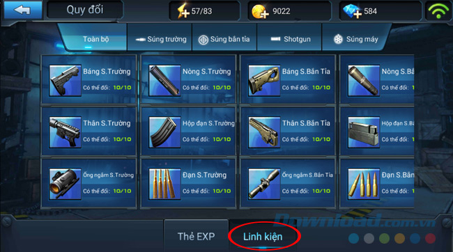 Ngoài ra, nếu cảm thấy không muốn sử dụng những mảnh ghép này, các bạn hoàn toàn có thể Quy đổi chúng ra những vật phẩm khác như: Thẻ EXP để nâng cấp vũ khí khác hoặc thẻ EXP nâng cấp đồng đội.