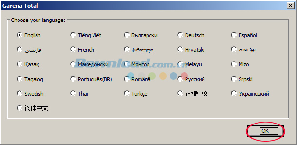 Bước 3: Cửa sổ tiếp theo xuất hiện cho phép bạn lựa chọn ngôn ngữ, ở đây hỗ trợ 26 loại ngôn ngữ khác nhau. Sau đó nhấn OK để hoàn tất quá trình cài đặt.