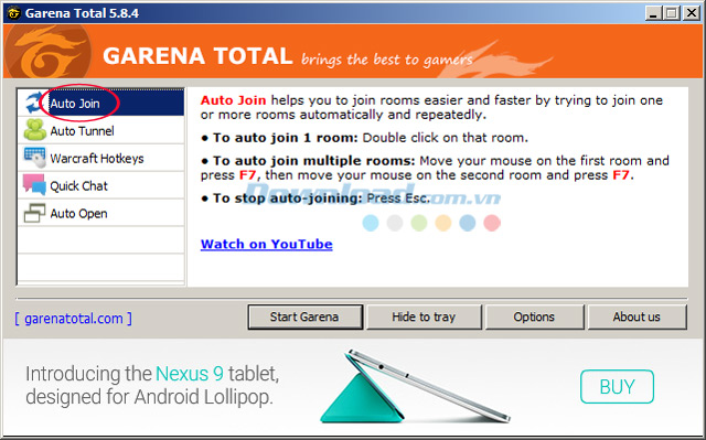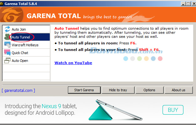 Trên giao diện chính của chương trình nhấn vào thẻ Auto Tunnel. Để Tunnel toàn bộ người chơi trong room thì nhấn F6, còn Tunnel toàn bộ người chơi trong host thì nhấn Shift + F6.