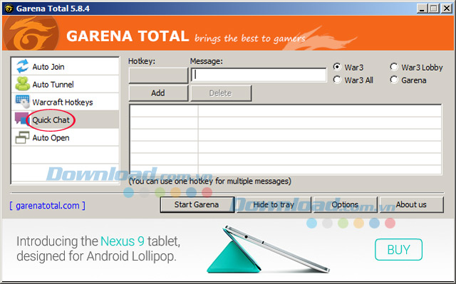 Trên giao diện chính của chương trình nhấn vào thẻ Quick Chat, tại đây có 4 chế độ cho bạn lựa chọn: