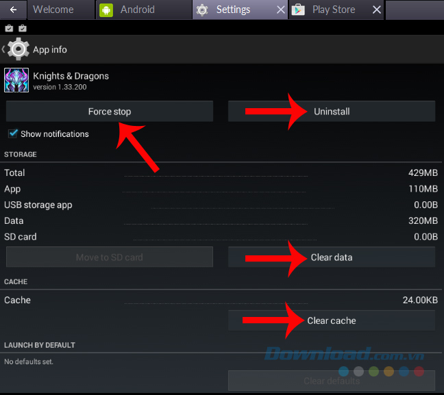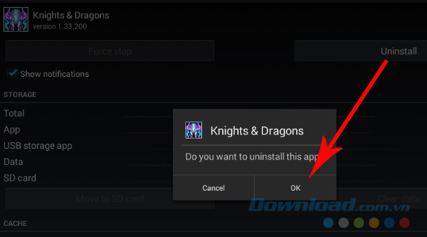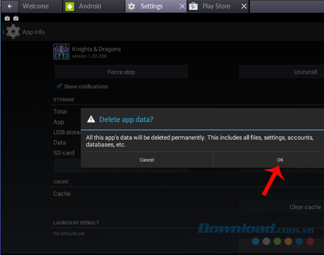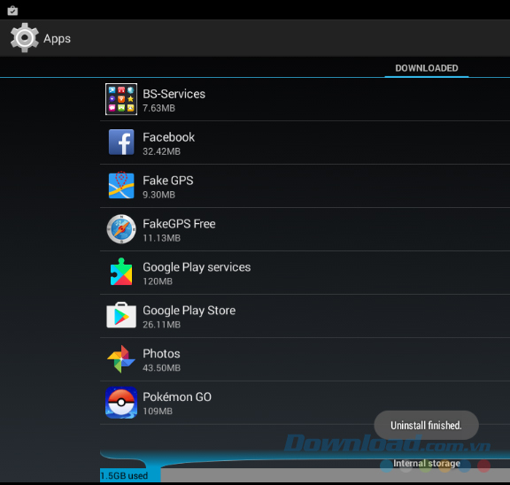 Xóa ứng dụng từ trong phần cài đặt của giả lập