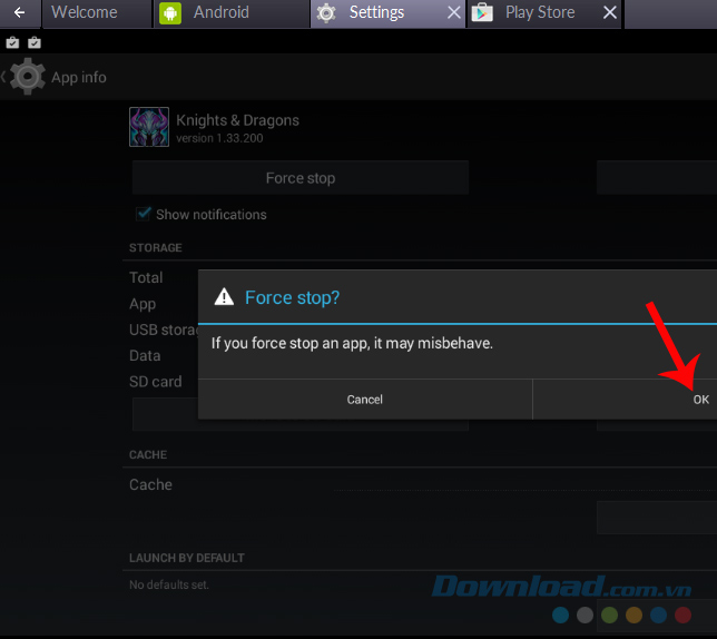 Làm tương tự với Force stop.