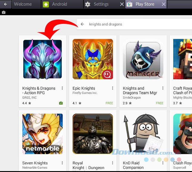 Bước 1: Từ giao diện chính của giả lập, các bạn chạm vào biểu tượng Google Play (Play Store), hình cái túi.