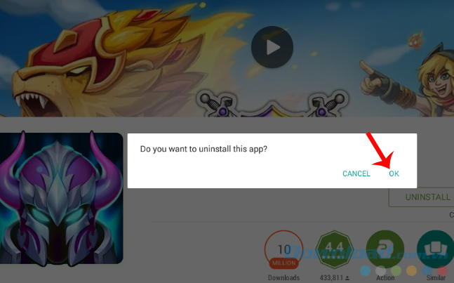 Cuối cùng là chọn Uninstall đễ gỡ bỏ app này khỏi BlueStacks.