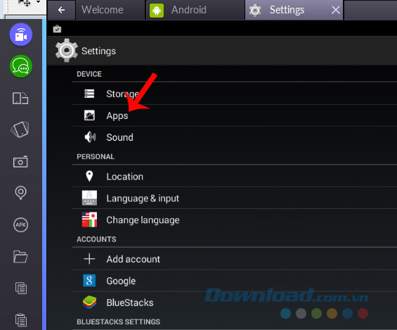 Bước 2: Trong phần Device, click tiếp vào Apps.