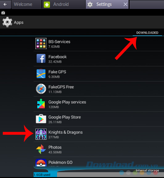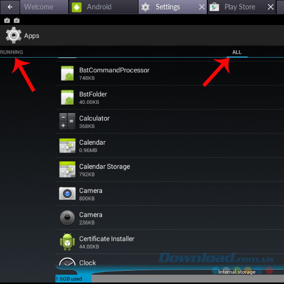 Bước 3: Tại đây, các bạn sẽ thấy các ứng dụng được chia thành từng mục Downloaded, Running, All...