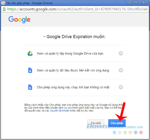 Bước 3: Một cửa sổ thông báo xuất hiện, tiếp tục chuột trái vào Cho phép - Allow.