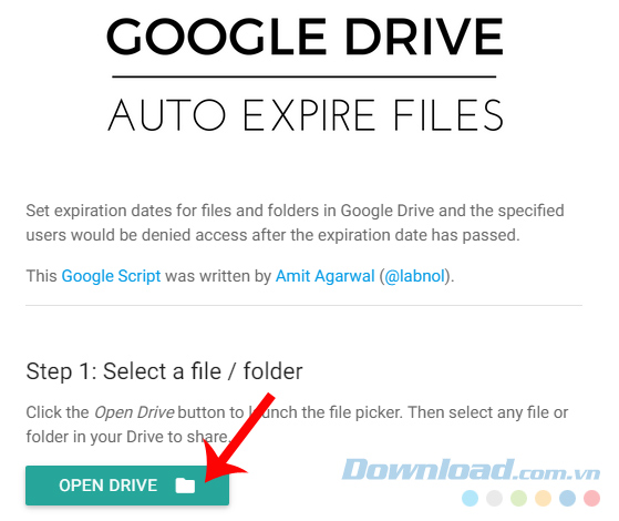 Bước 4: Một giao diện mới xuất hiện, các bạn lần lượt theo các bước được hiển thị trên đó. Đầu tiên là vào Open Drive để chọn lấy một tài liệu, file cần chia sẻ với người khác.
