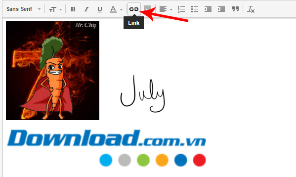 Chọn vào biểu tượng hình bức ảnh (Insert Image) để chèn ảnh vào chữ ký Gmail.