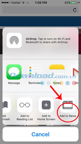 Sau khi thay đổi vị trí, thoát ra ngoài và nhấp chọn Add to News cho trang web này, vậy là xong! Từ giờ, nếu vào Apple News và muốn truy cập vào trang này, các bạn không cần chuyển trình duyệt, vì nó đã được tích hợp trong Apple News cho bạn rồi.