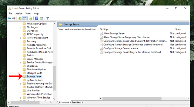 Kích hoạt Storage Sense trong Local Group Policy Editor