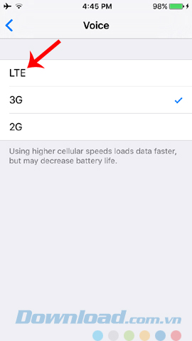 Bước 3: Vào mục Voice - Thoại và tìm kiếm bên trong xem có LTE (viết tắt của Long Term Evolution) hay không?