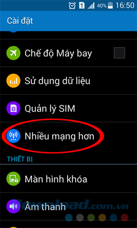 Bước 1: Các bạn cũng truy cập vào trong Cài đặt - Settings của thiết bị. Chọn vào Nhiều mạng hơn - More...