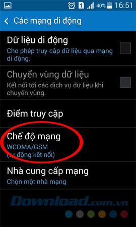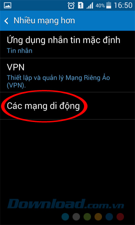 Bước 2: Tiếp tục chọn Các mạng di động.
