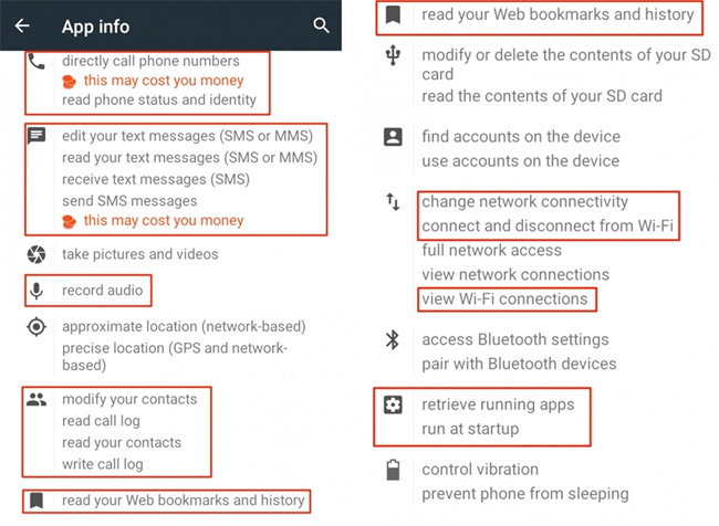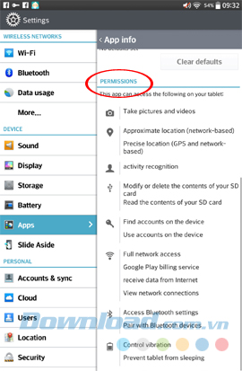 Bước 2: Trong phần chi tiết (App info), các bạn kéo xuống và kiểm tra các thông tin trong phần Permissons.